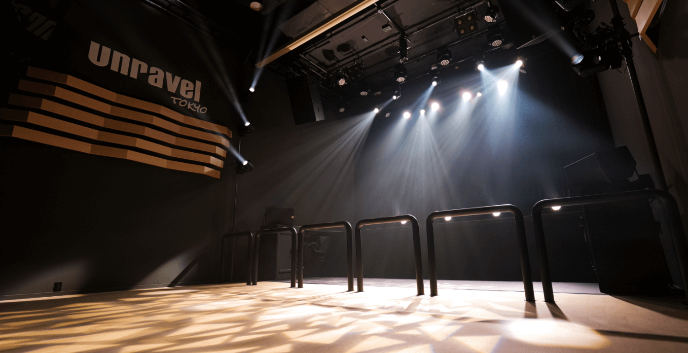 ダークグレーを基調とした内装に、木の床とオブジェクトを配置し、六本木を感じられるライブスペースとなっております。 また昇降式ステージは、フルフラットから100cmまで前後分割にて高さ調整が可能な為、様々なパフォーマンスに合わせたステージセットが可能です。